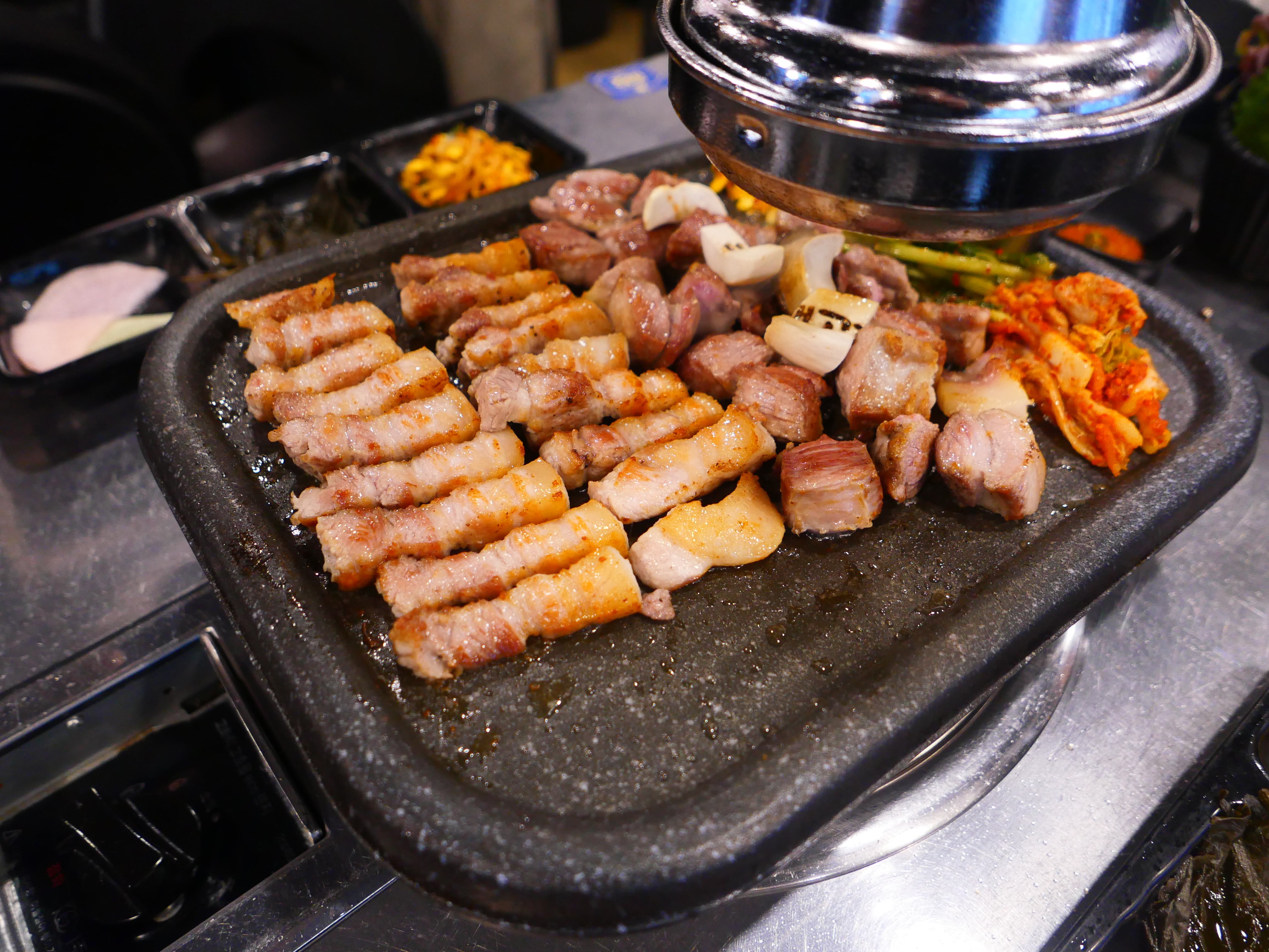 불판에 있는 멜젓이 킥이다.